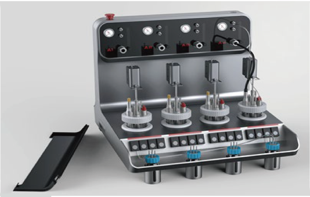 整機(jī)小巧,一體化設(shè)計(jì),節(jié)省實(shí)驗(yàn)室空間;和生產(chǎn)罐體在結(jié)構(gòu)、流場特性和控制方式等方面保持一致性,便于后期放大。