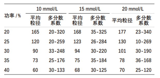 3.1超聲功率對脂質(zhì)體粒徑的影響
