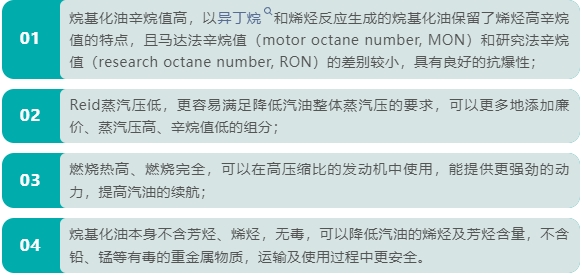 相比上述汽油添加劑,烷基化油具有下列明顯的優(yōu)勢: