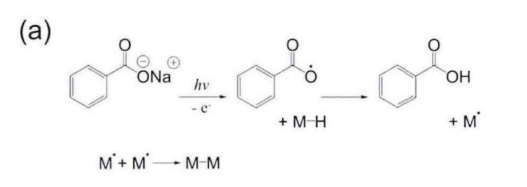 聚合物在光子的輻照下可以發(fā)生交聯(lián),它與光引發(fā)聚合相似,是一種自由基反應(yīng)。PVA在紫外光下的交聯(lián)反應(yīng)由光敏劑 NaB 間接引發(fā)。如圖a,NaB首先吸收 254nm的紫外光形成自由基,形成的自由基奪取PVA鏈(M)上的叔氫原子,生成鏈自由基(M·,最后鏈自由基發(fā)生偶合形成新的連接鍵。PVA 在紫外交聯(lián)后由線型分子變?yōu)椴蝗堋⒉蝗鄣木W(wǎng)絡(luò)結(jié)構(gòu),它在交聯(lián)前后組成結(jié)構(gòu)的變化難以直接表征。因此,交聯(lián)反應(yīng)的程度通過光敏劑的消耗來確定。圖b為交聯(lián)前后PVA薄膜的ATR-FTIR譜圖(NaB的含量為6wt%),交聯(lián)前的譜圖中,薄膜在1597cm-1和1553 cm-1處存在特征吸收峰,分別對(duì)應(yīng) NaB 苯環(huán)上的C=C伸縮振動(dòng)和羧酸根的不對(duì)稱伸縮振動(dòng):紫外交聯(lián)后,上述兩處NaB的特征吸收峰完全消失,證明光敏劑在交聯(lián)過程中已經(jīng)完全消耗。