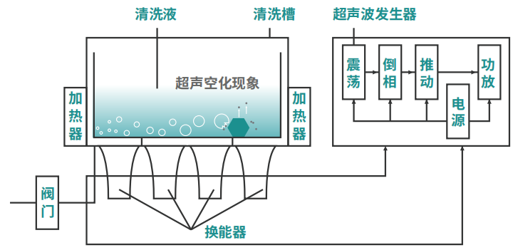 通過換能器,將功率超聲頻源的聲能轉(zhuǎn)換成機(jī)械振動(dòng),通過清洗槽壁將超聲波輻射到槽子中的清洗液。由于受到超聲波的輻射,槽內(nèi)液體中的微氣泡能夠在聲波的作用下快速變大破裂,破裂時(shí)產(chǎn)生的高強(qiáng)度剪切力作用于各類樣品上,從而達(dá)到清洗、提取、乳化、加速溶解、粉碎、分散等作用。